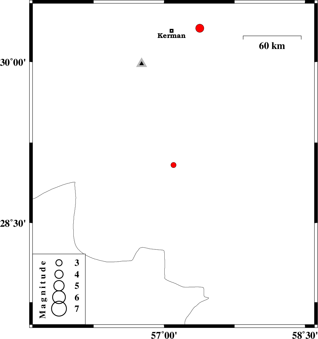 | 2008/06/04 | 00:38:42.5 | 05:08:42.5 | 30.31 | 57.38 | 14 | ML:3.9 | 29 km East of Kerman, Kerman Province |