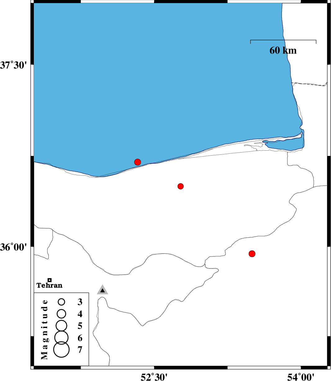 | 2008/06/09 | 13:38:22.7 | 18:08:22.7 | 36.7 | 52.33 | 28 | ML:2.9 | Caspian Sea, 8 km Mahmud Abad | ||
