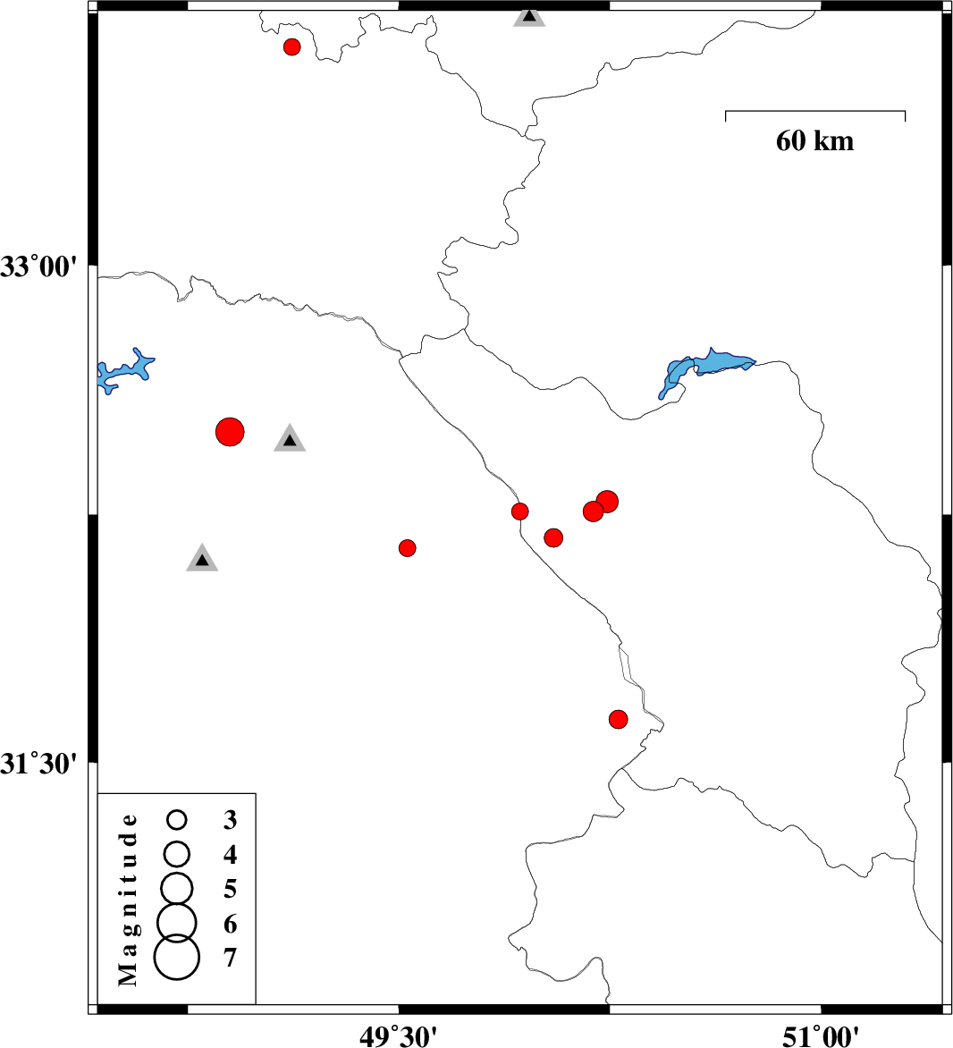 | 2008/06/03 | 09:21:52.7 | 13:51:52.7 | 32.5 | 48.9 | 14 | ML:4.5 | 23 km North-West of Lali, Khoozestan Province | ||
