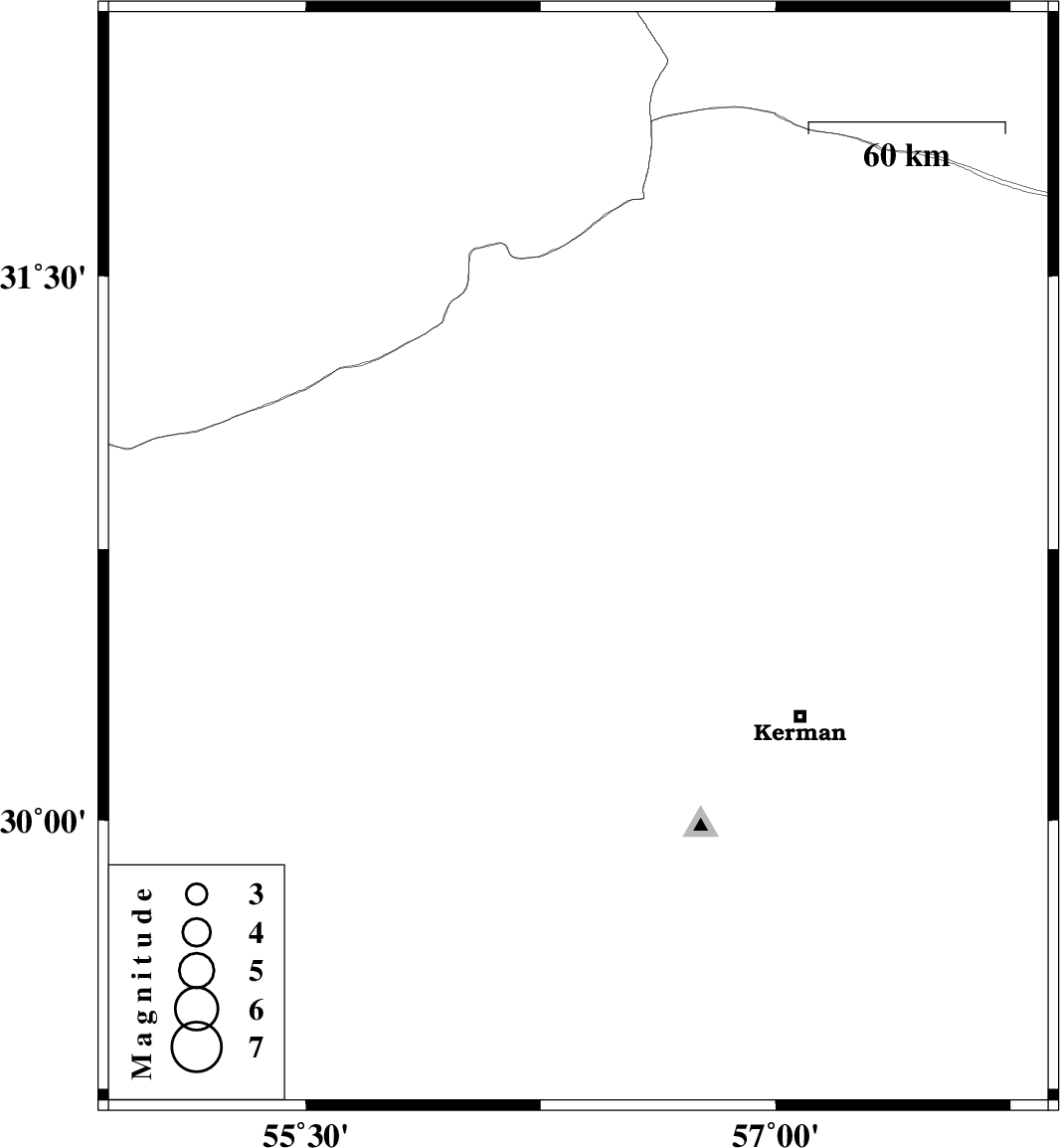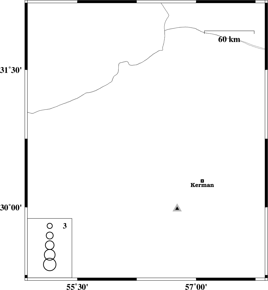 | 2008/06/15 | 22:03:24.1 | 02:33:24.1 | 30.72 | 56.37 | 6 | ML:2.7 | 21 km West of Zarand, Kerman Province |