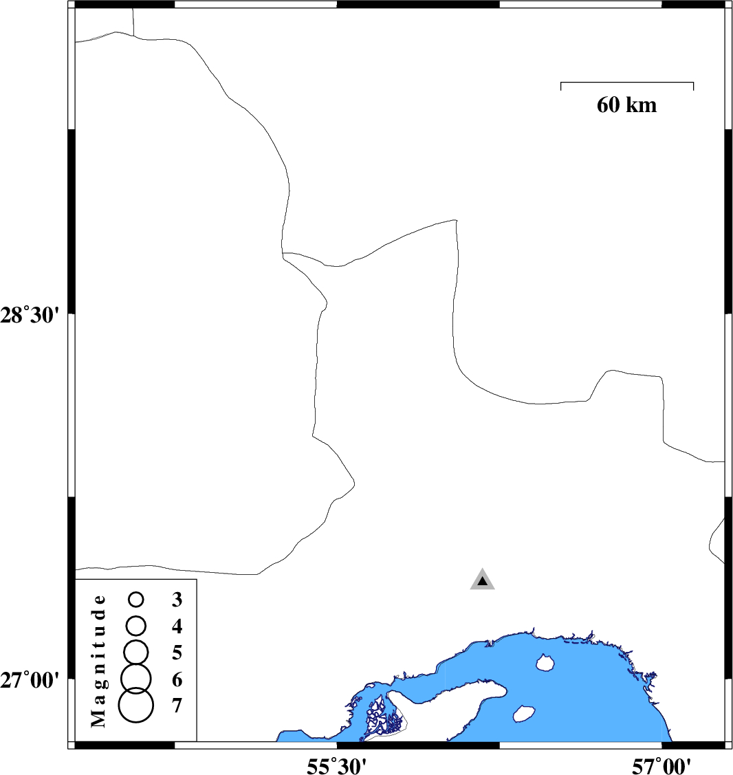| 2008/06/16 | 15:53:22.7 | 20:23:22.7 | 28.24 | 55.79 | 15 | ML:3.5 | 13 km West of Hajiabad, Hormozgan Province |