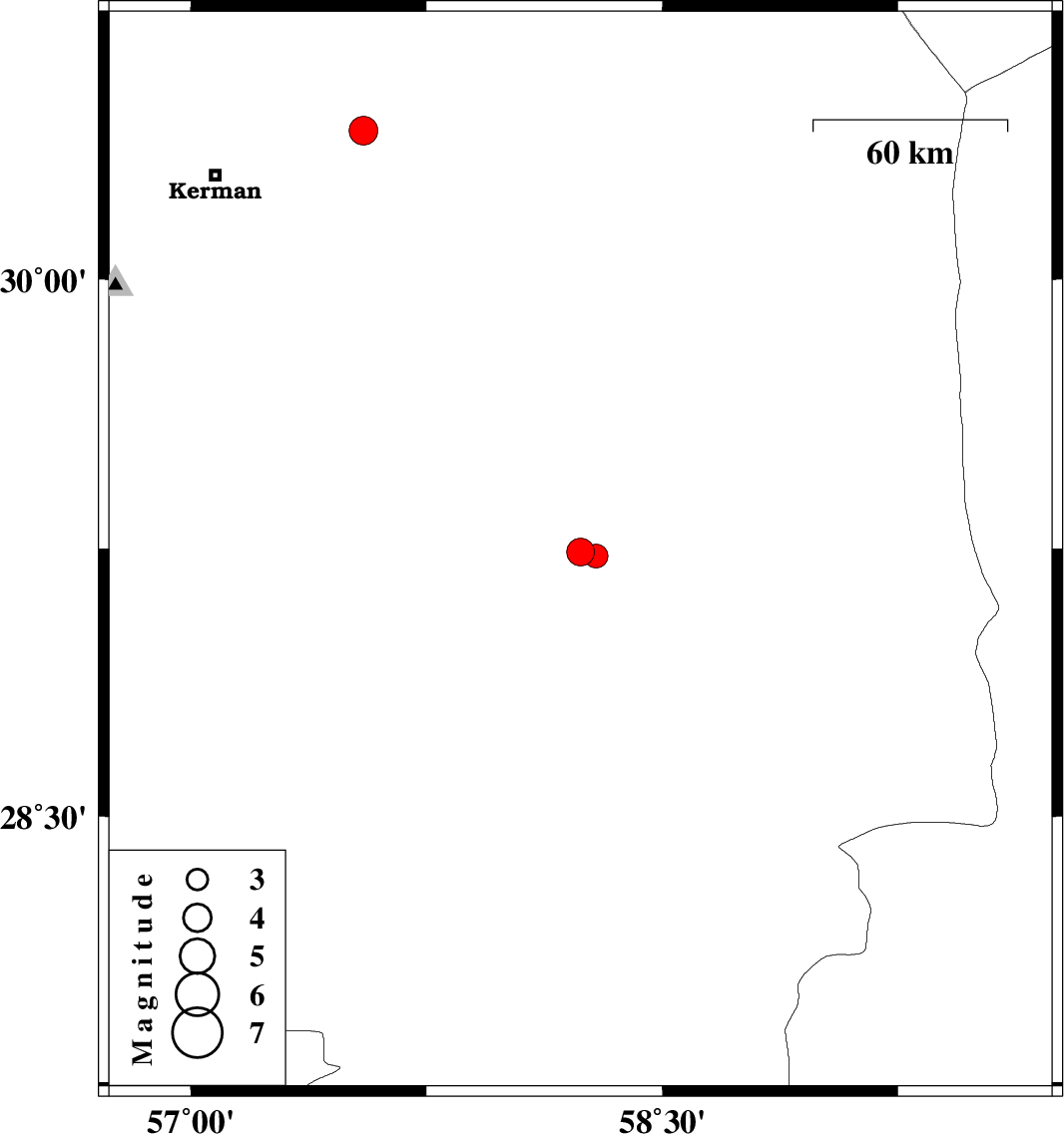 | 2008/06/18 | 18:13:43.1 | 22:43:43.1 | 29.23 | 58.29 | 15 | ML:3.4 | 15 km North of Bam, Kerman Province |