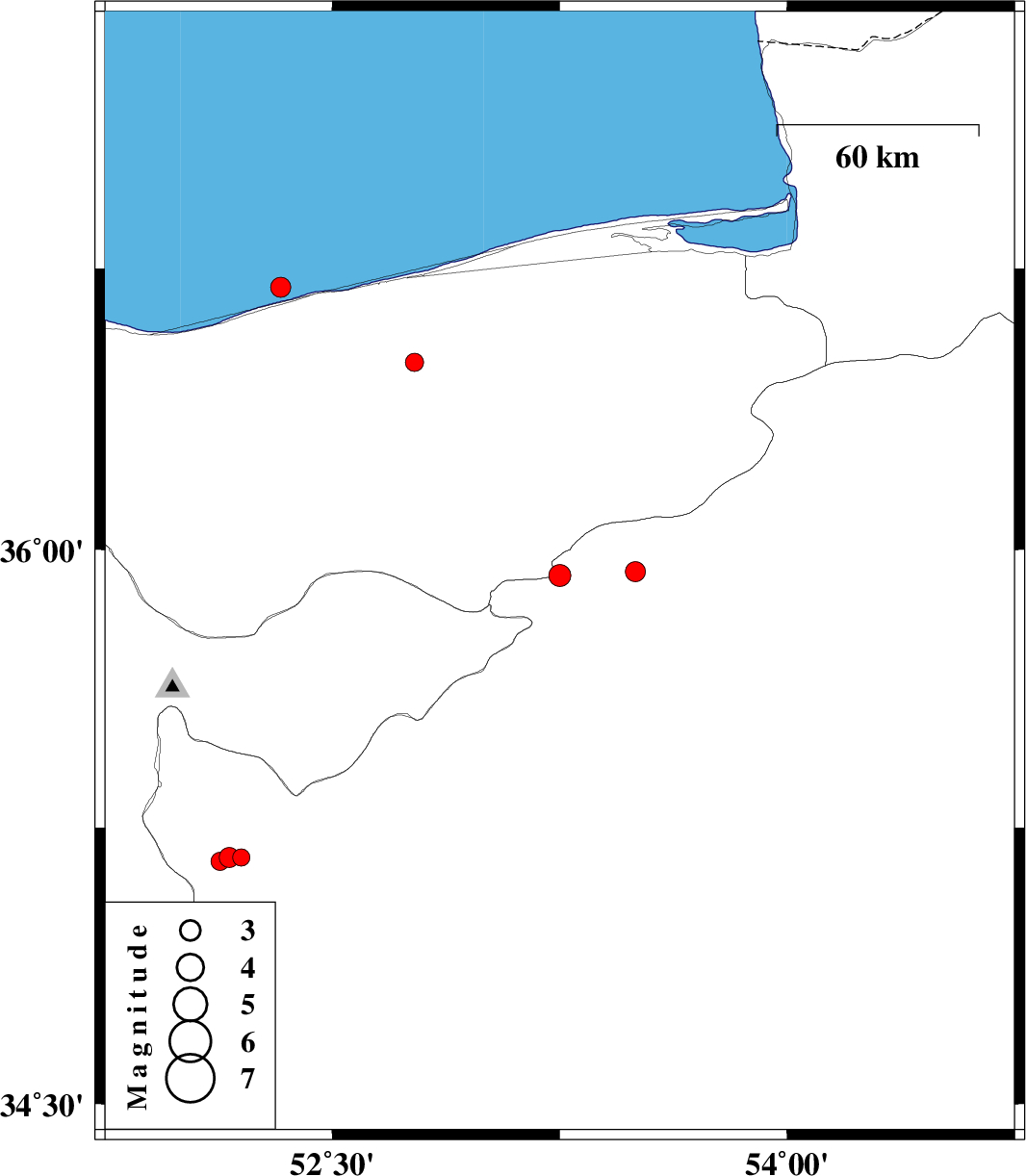 | 2008/06/09 | 13:38:22.7 | 18:08:22.7 | 36.7 | 52.33 | 28 | ML:2.9 | Caspian Sea, 8 km Mahmud Abad |