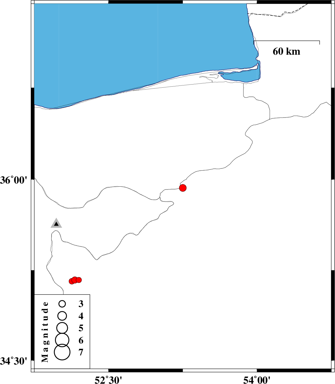 | 2008/06/19 | 02:29:07.7 | 06:59:07.7 | 35.16 | 52.13 | 32 | ML:2.7 | 20 km West of Garmsar, Semnan Province |