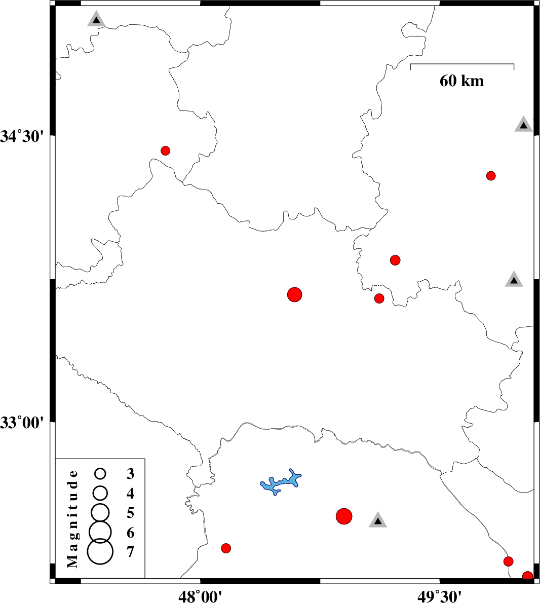| 2008/06/25 | 09:56:20.6 | 14:26:20.6 | 33.67 | 48.59 | 14 | ML:4.1 | 29 km South-West of Borujerd, Lorestan Province | ||