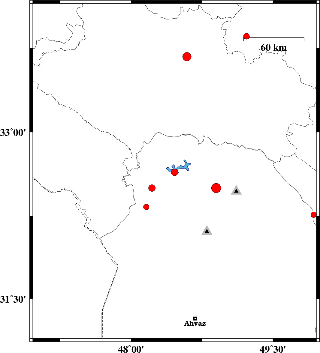 2008/06/03 | 09:21:52.7 | 13:51:52.7 | 32.5 | 48.9 | 14 | ML:4.5 | 23 km North-West of Lali, Khoozestan Province | ||