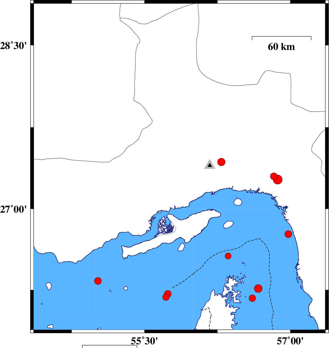 Persian Gulf, 48 km East of Bandar-e lengeh | |