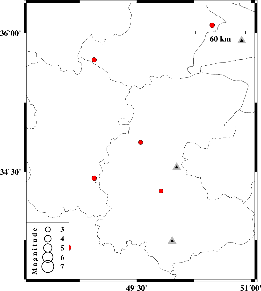 | 2008/07/01 | 18:33:45.7 | 23:03:45.7 | 34.43 | 48.94 | 14 | ML:2.9 | 18 km North-East of Malayer, Hamedan Province | ||
