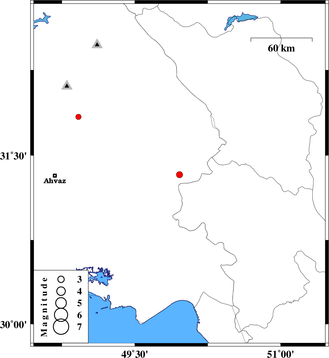 | 2008/07/12 | 09:19:56.5 | 13:49:56.5 | 31.84 | 48.92 | 5 | ML:2.6 | 23 km South of Shushtar, Khoozestan Province |