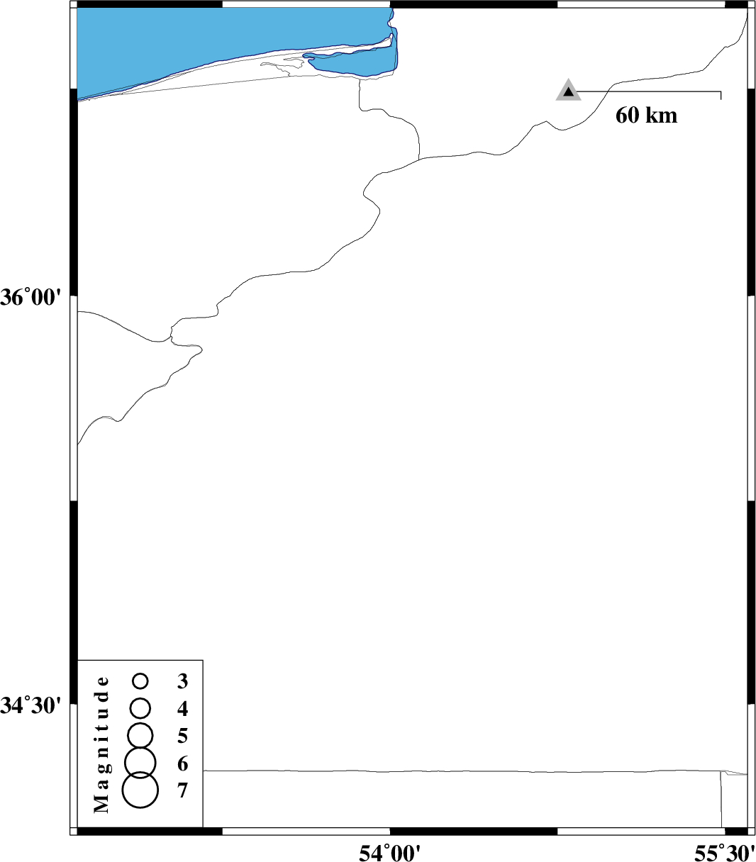 | 2008/07/15 | 03:54:42.4 | 08:24:42.4 | 35.54 | 54.1 | 34 | ML:3.2 | 63 km East of Semnan, Semnan Province |