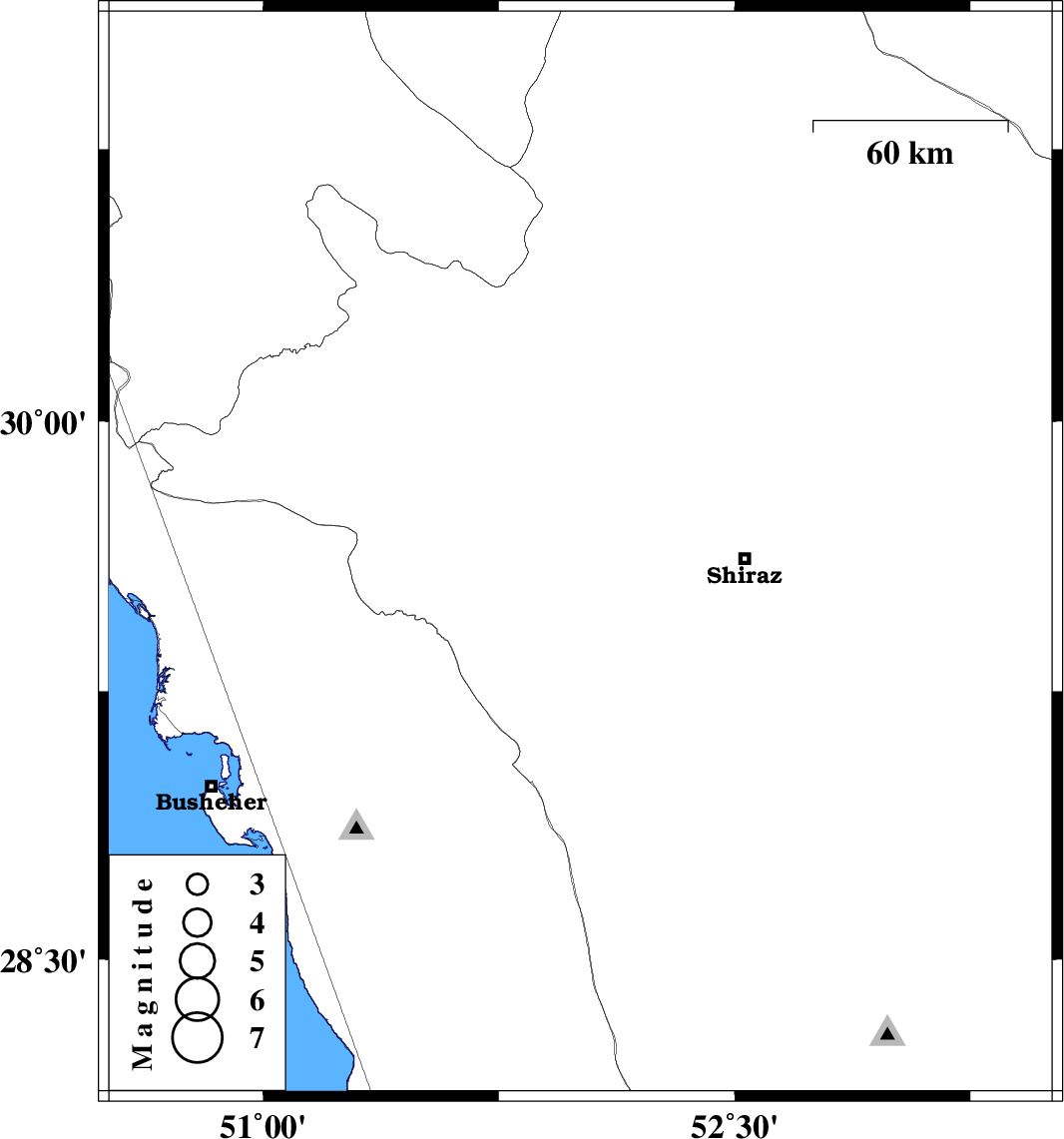 | 2008/07/15 | 09:46:24.4 | 14:16:24.4 | 29.63 | 52.01 | 15 | ML:3.4 | 34 km East of Kazerun, Fars Province |