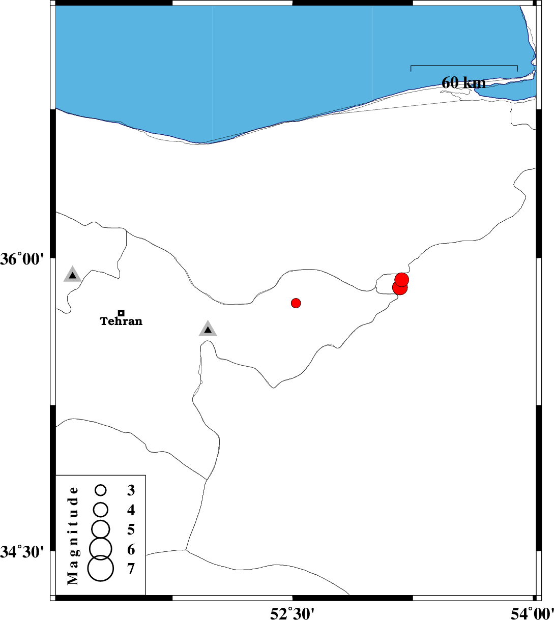 | 2008/07/16 | 16:33:43.7 | 21:03:43.7 | 35.89 | 53.18 | 15 | ML:4 | 27 km South-East of Pol-E-Sefid, Mazandaran Province | ||