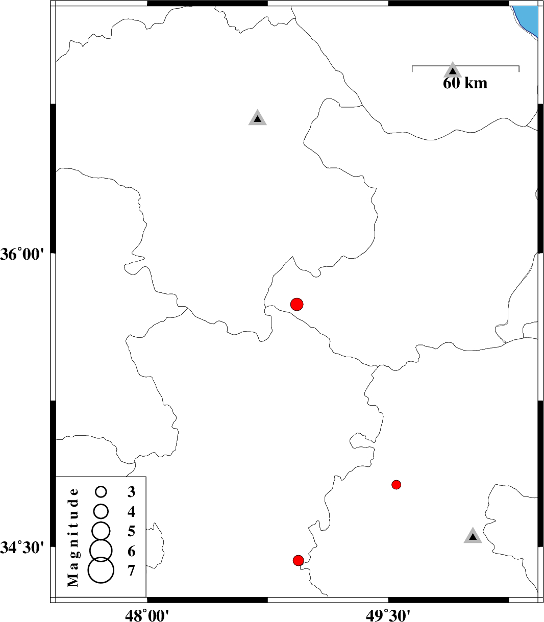 | 2008/07/01 | 18:33:45.7 | 23:03:45.7 | 34.43 | 48.94 | 14 | ML:2.9 | 18 km North-East of Malayer, Hamedan Province | ||