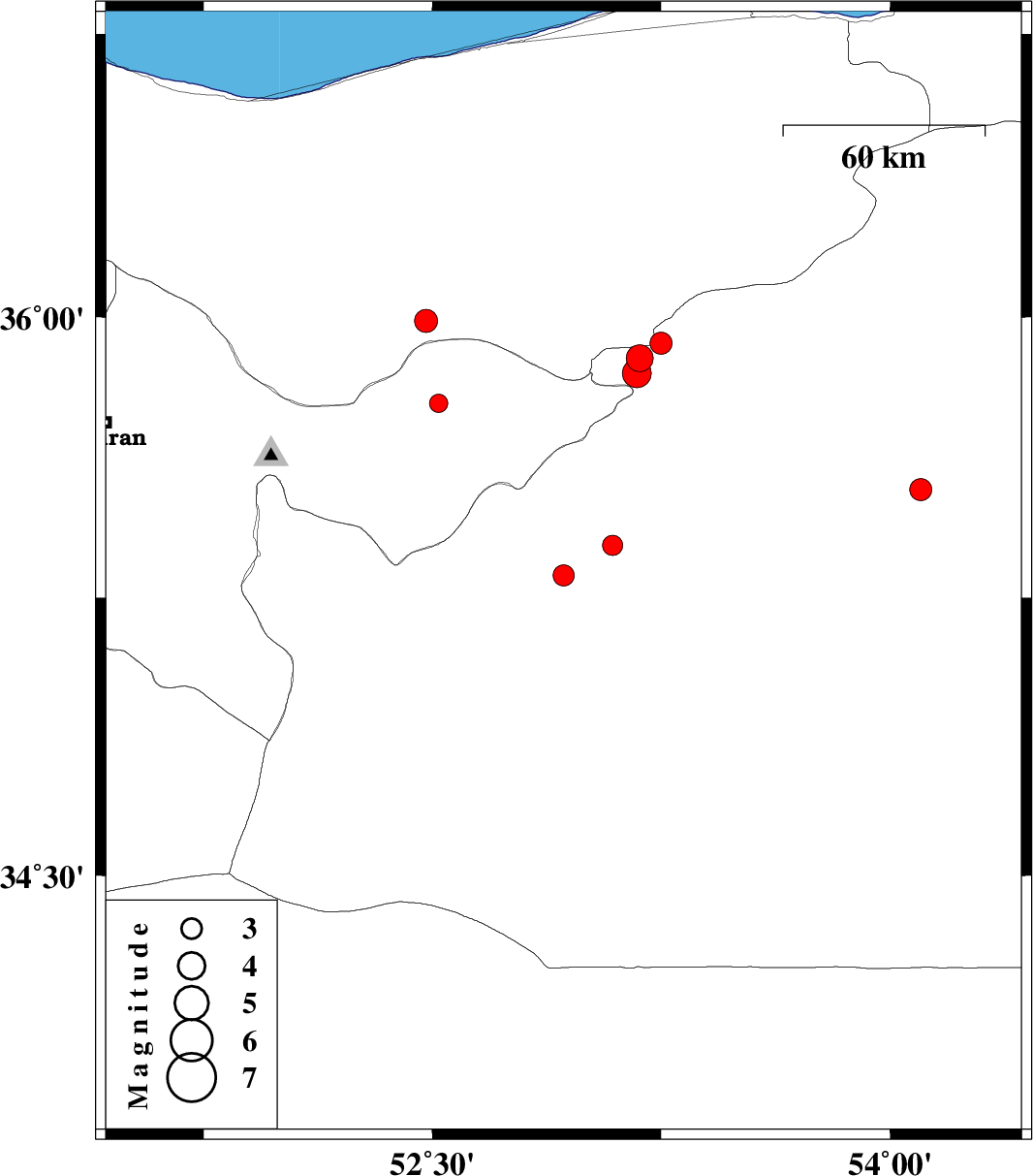 | 2008/06/24 | 14:46:22.2 | 19:16:22.2 | 35.93 | 53.25 | 14 | ML:3.2 | 26 km South-East of Pol-E-Sefid, Mazandaran Province |