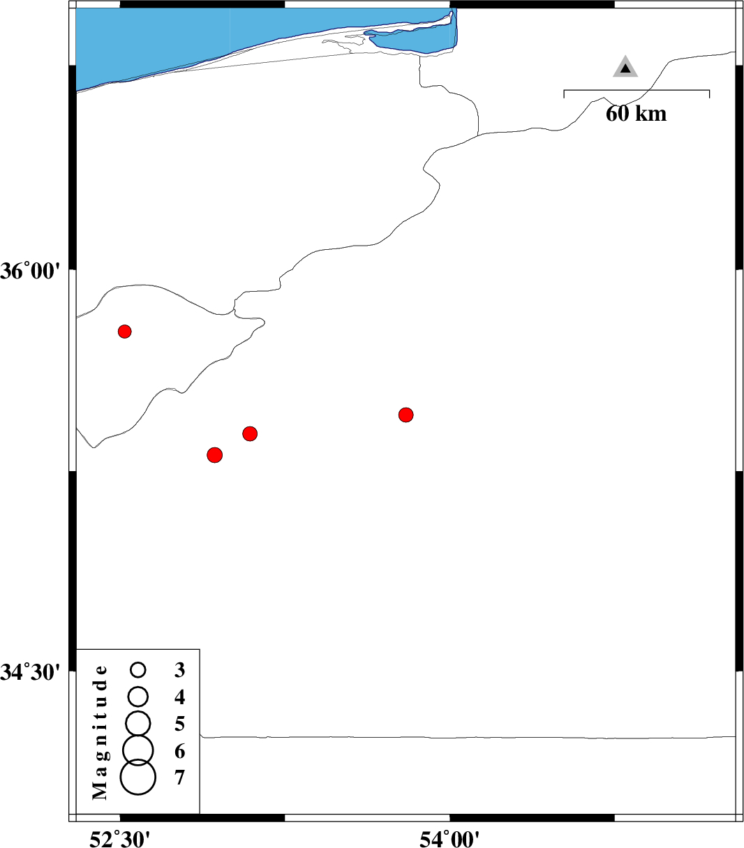 | 2008/07/24 | 00:37:41.3 | 05:07:41.3 | 35.31 | 52.93 | 14 | ML:3.1 | 51 km South-East of Firuzkuh, Tehran Province | ||