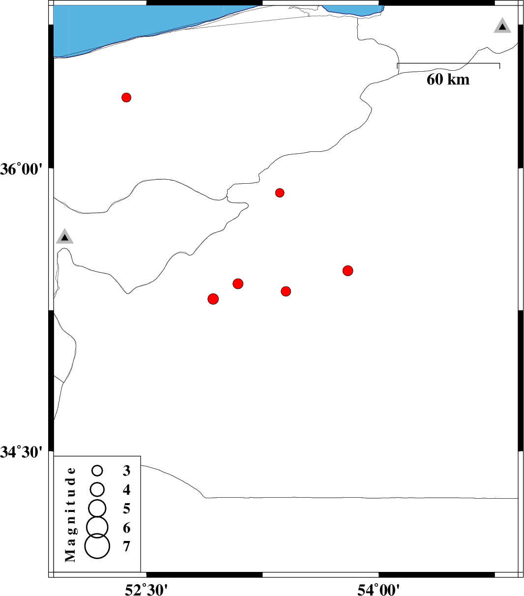 | 2008/07/25 | 19:29:42.1 | 23:59:42.1 | 35.46 | 53.8 | 15 | ML:2.9 | 37 km South-East of Semnan, Semnan Province | ||