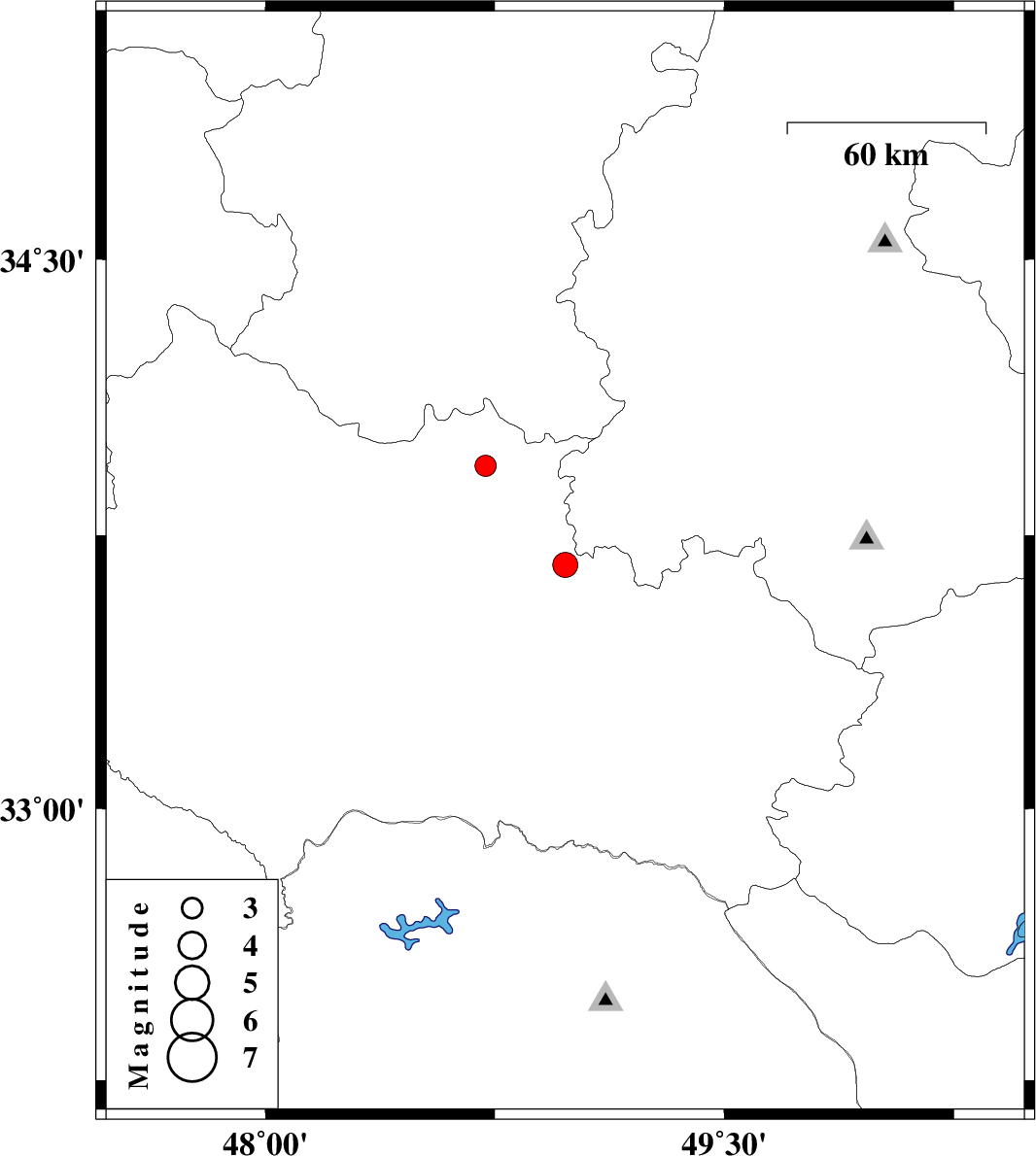 2008/08/02 | 06:25:11.6 | 10:55:11.6 | 33.67 | 48.98 | 14 | ML:3.7 | 22 km North of Dorud, Lorestan Province | ||