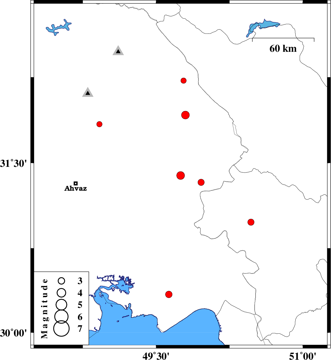 | 2008/07/12 | 09:19:56.5 | 13:49:56.5 | 31.84 | 48.92 | 5 | ML:2.6 | 23 km South of Shushtar, Khoozestan Province |