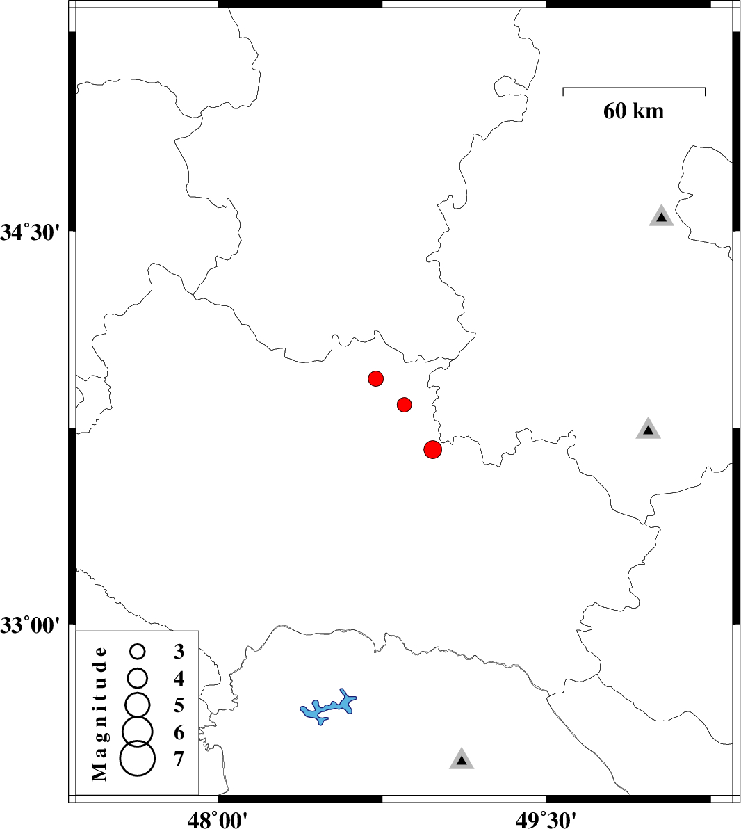 | 2008/08/02 | 06:25:11.6 | 10:55:11.6 | 33.67 | 48.98 | 14 | ML:3.7 | 22 km North of Dorud, Lorestan Province | ||