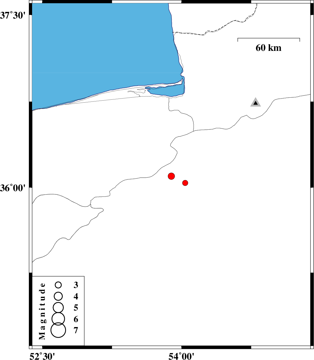 | 2008/08/01 | 02:07:55.8 | 06:37:55.8 | 36.04 | 54.04 | 42 | ML:2.7 | 31 km South-West of Damghan, Semnan Province |