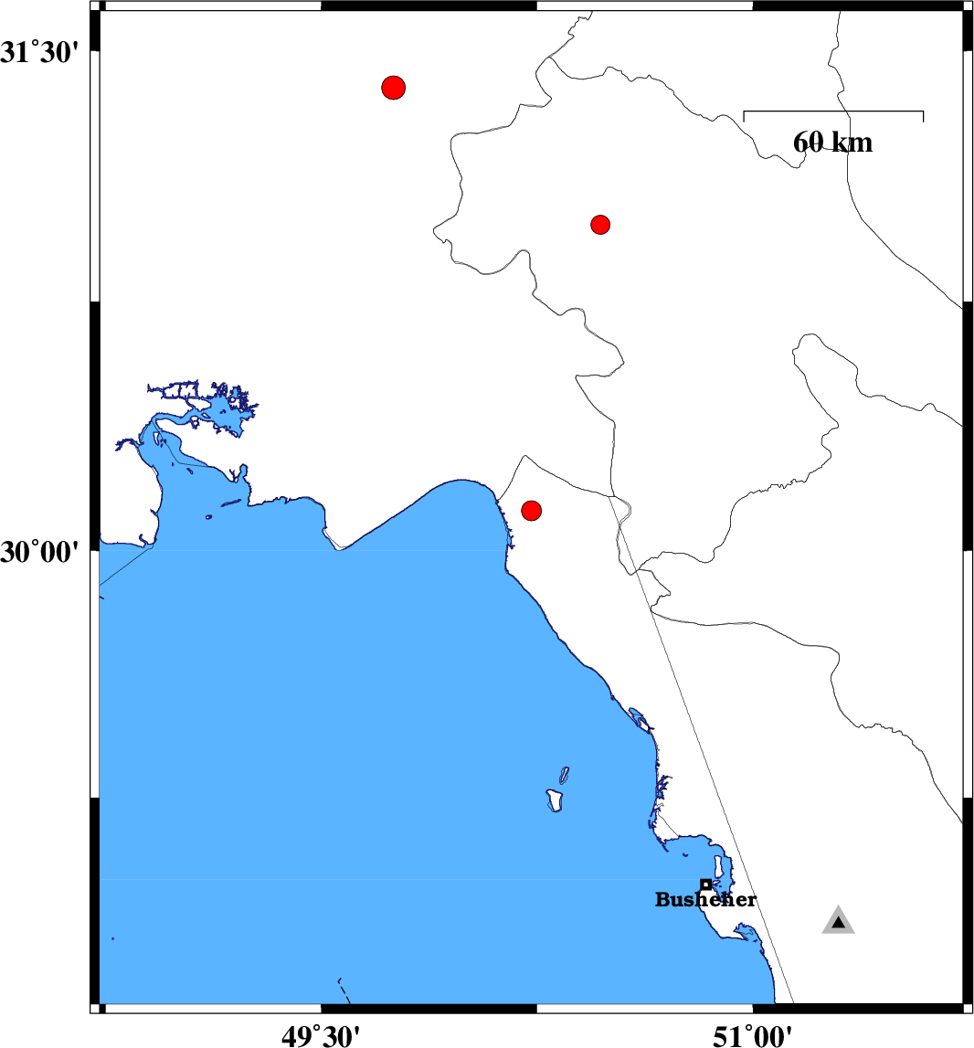 2008/08/02 | 20:45:37.1 | 01:15:37.1 | 31.39 | 49.75 | 15 | ML:3.6 | 18 km North-East of Ramhormoz, Khoozestan Province | ||