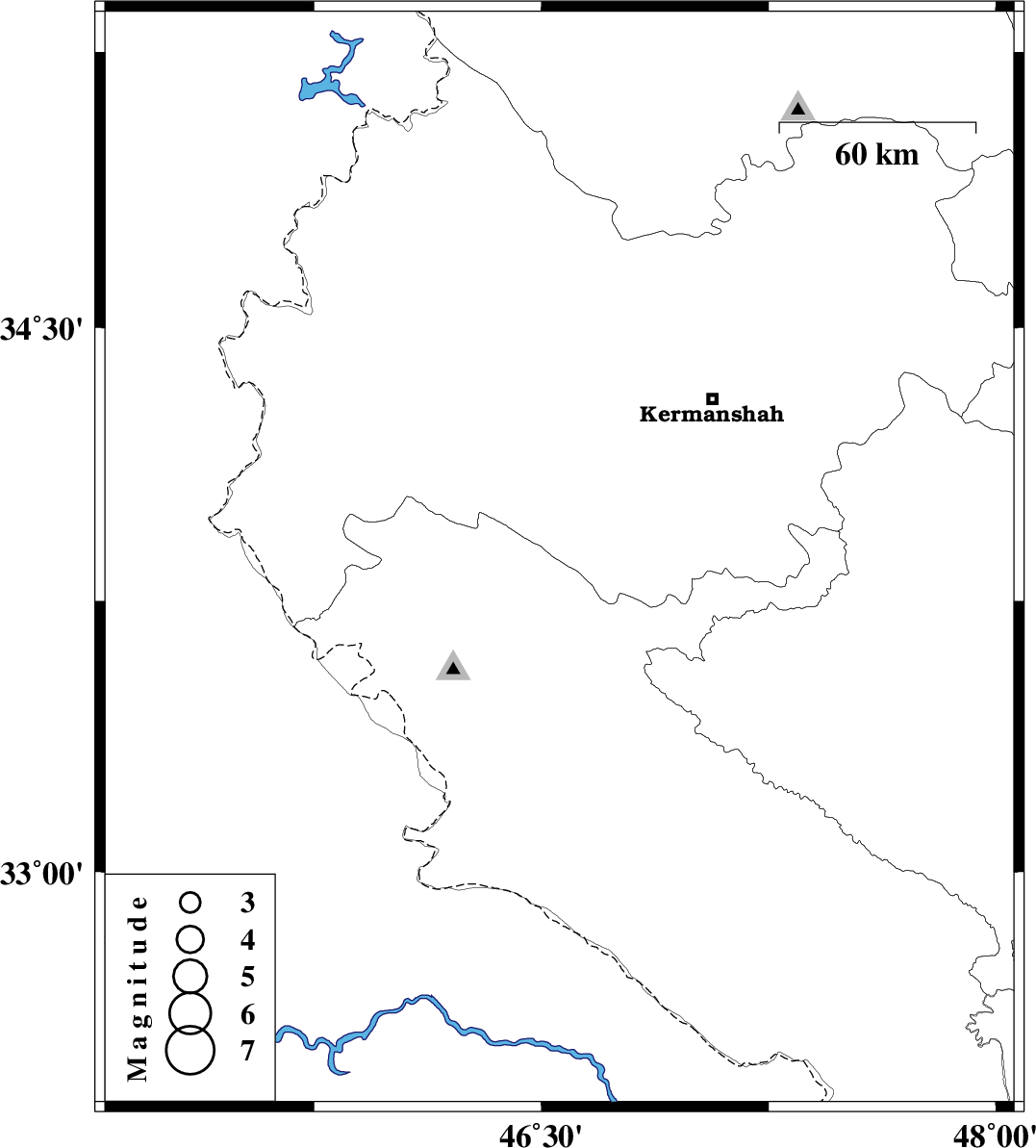| 2008/08/08 | 17:34:54.5 | 22:04:54.5 | 33.86 | 46.56 | 14 | ML:3.2 | 8 km Sar Ableh, Ilam Province |