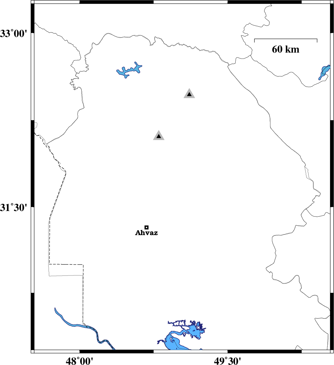 2008/08/15 | 02:11:58.6 | 06:41:58.6 | 31.54 | 50.3 | 14 | ML:3.2 | 37 km East of Bagh Malek, Khoozestan Province |