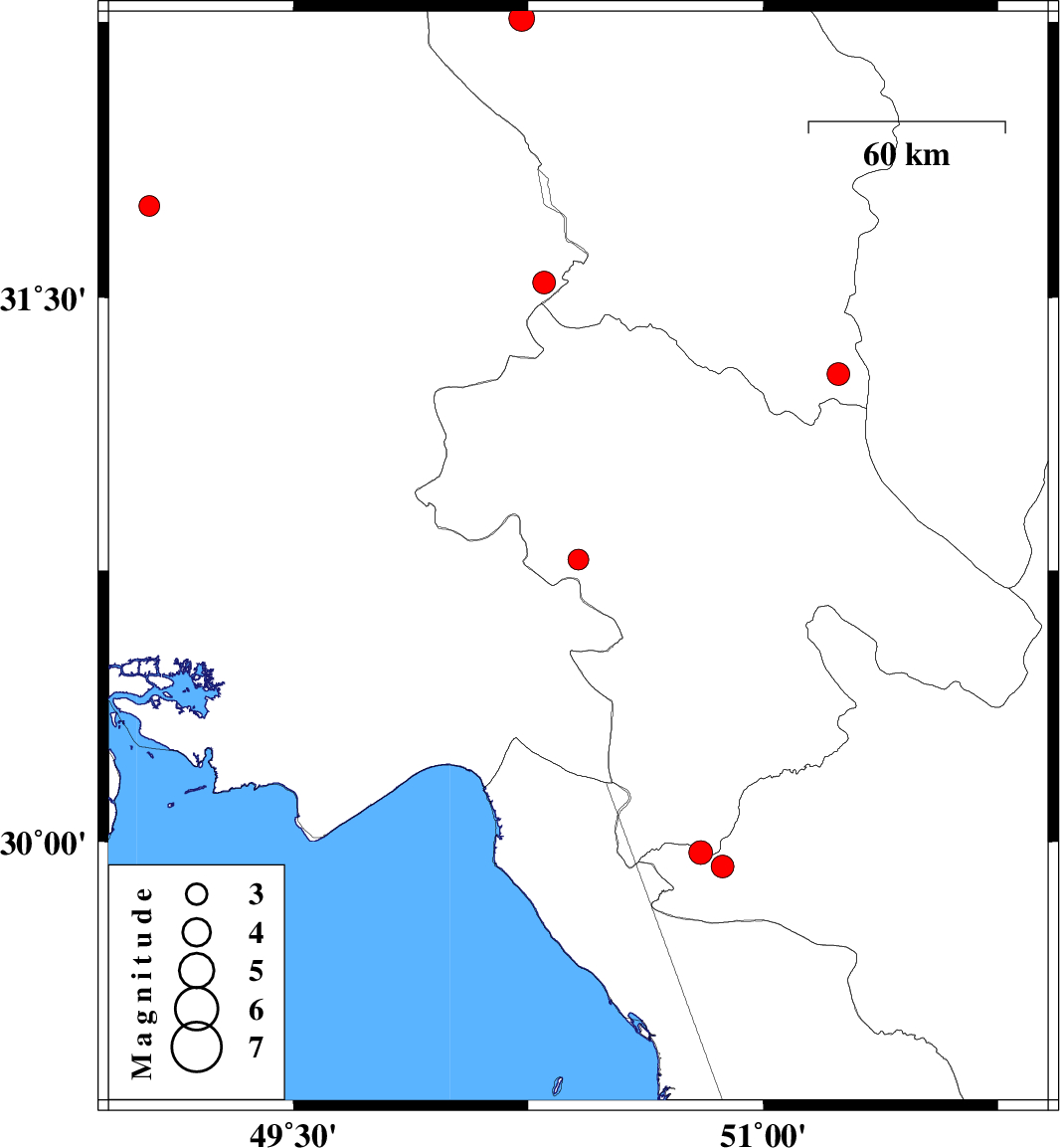 | 2008/08/11 | 23:00:08.0 | 03:30:08.0 | 29.93 | 50.87 | 14 | ML:3.2 | 47 km South of Dogonbadan, Kohkiluieh va boyerahmad Province |