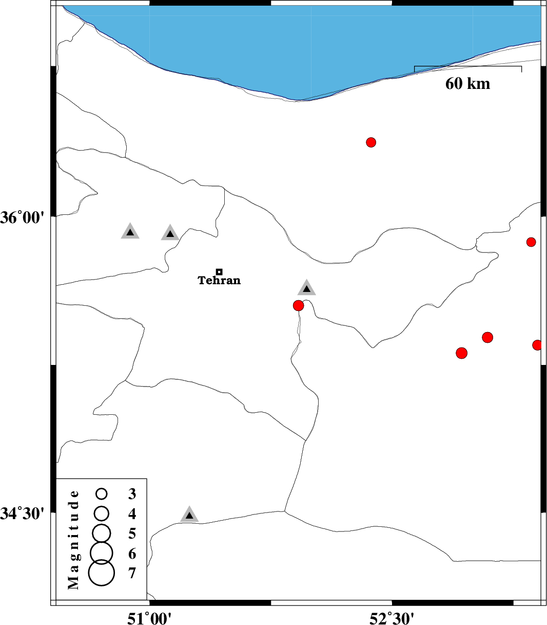| 2008/07/24 | 00:37:41.3 | 05:07:41.3 | 35.31 | 52.93 | 14 | ML:3.1 | 51 km South-East of Firuzkuh, Tehran Province |