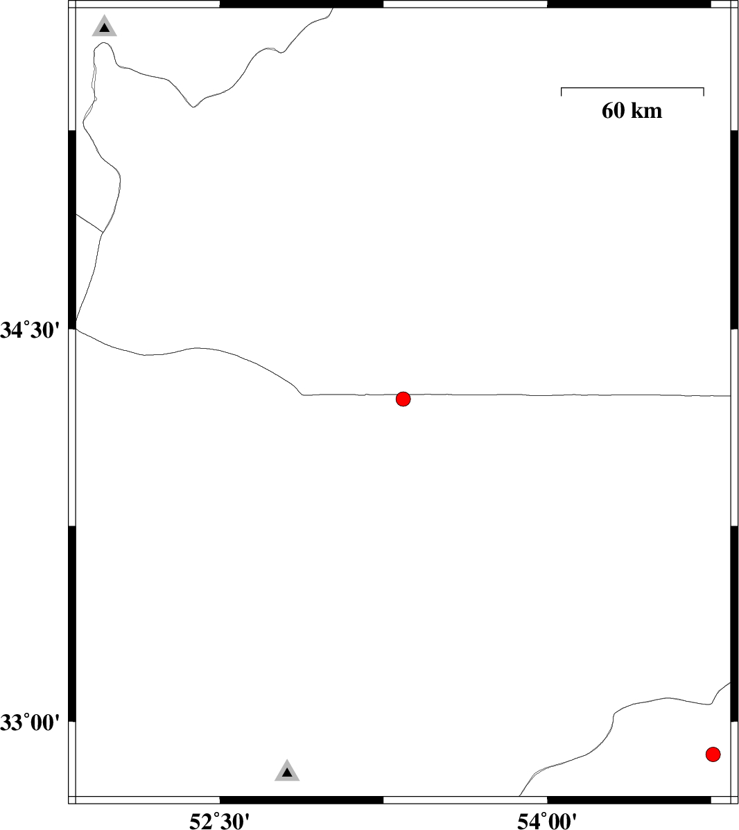 | 2008/08/24 | 07:49:57.5 | 12:19:57.5 | 34.21 | 53.34 | 14 | ML:3 | 128 km North-East of Ardestan, Esfahan Province | ||