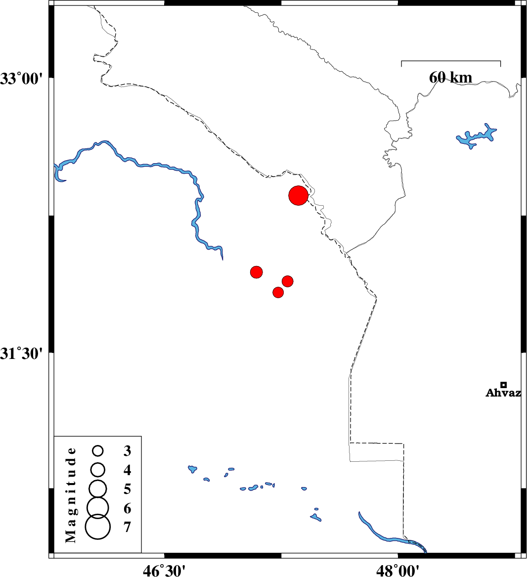 2008/08/27 23:16:17.9 03:46:17.9 31.8347.2337 ML:3.1 95 km North-West of Susangerd, Khoozestan Province
