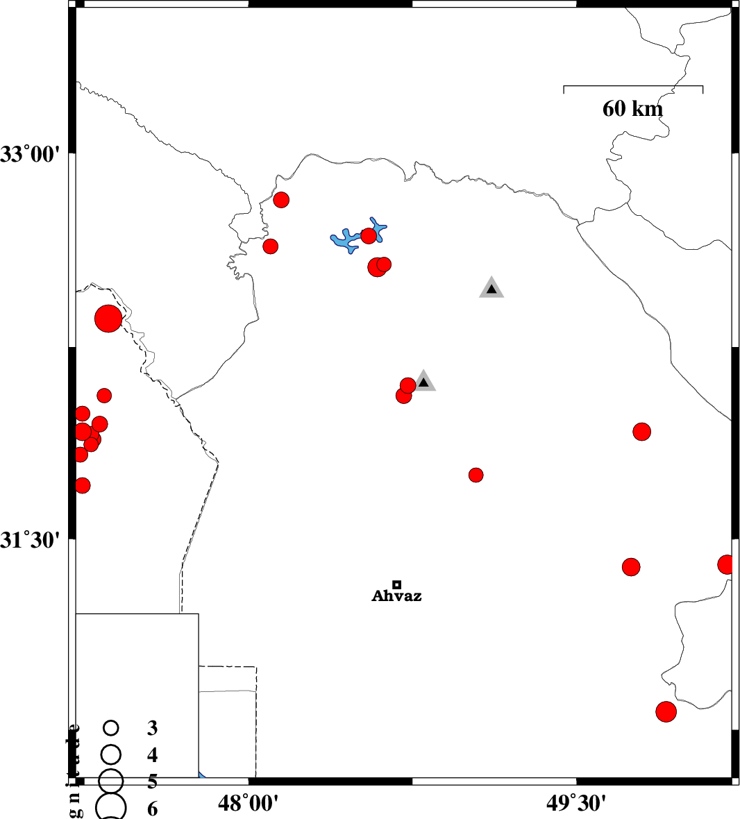 2008/08/02 | 20:45:37.1 | 01:15:37.1 | 31.39 | 49.75 | 15 | ML:3.6 | 18 km North-East of Ramhormoz, Khoozestan Province | ||