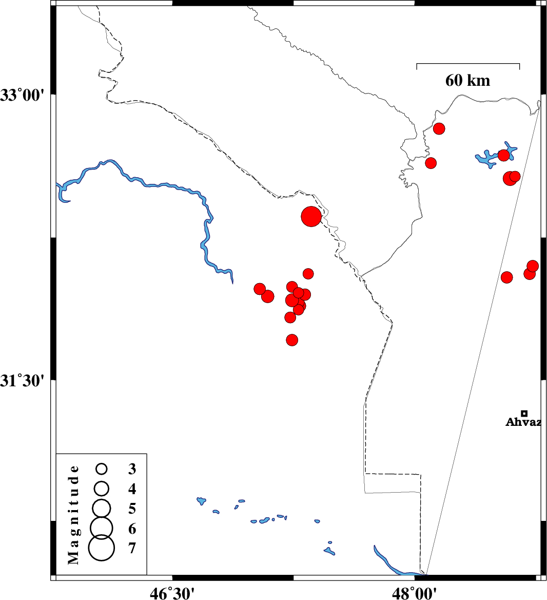 2008/08/27 23:16:17.9 03:46:17.9 31.8347.2337 ML:3.1 95 km North-West of Susangerd, Khoozestan Province