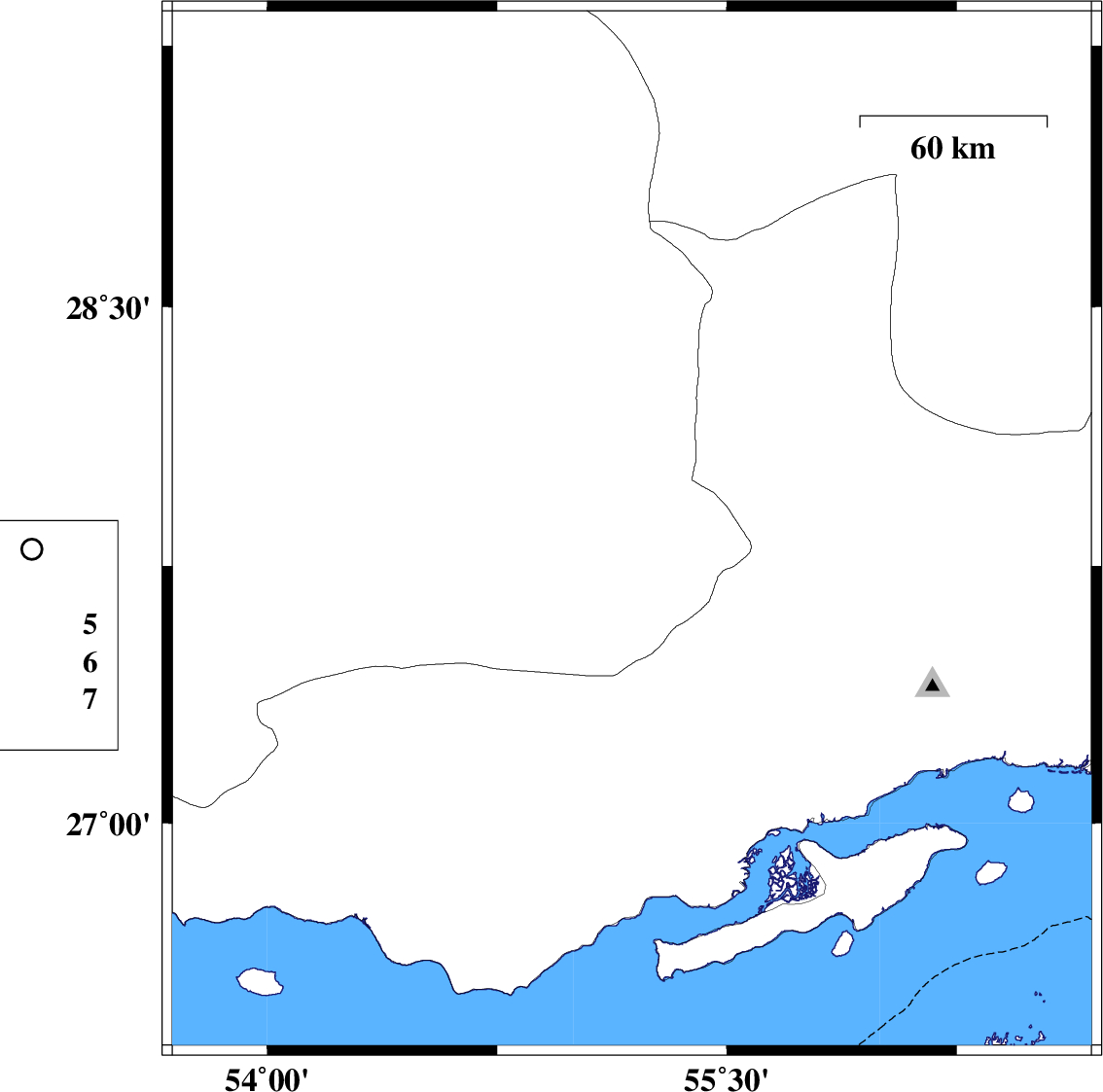 | 2008/08/27 | 20:20:18.8 | 00:50:18.8 | 27.25 | 55.91 | 5 | ML:3.4 | 37 km West of Bandar-e abbas, Hormozgan Province | ||