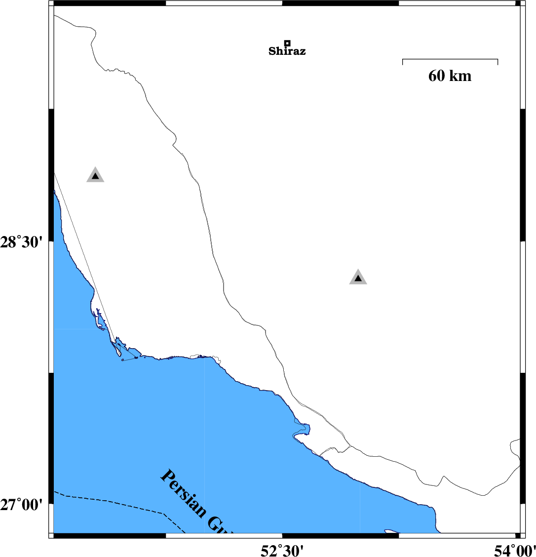 2008/09/01 | 08:08:54.1 | 12:38:54.1 | 28.33 | 52.53 | 3 | ML:3.4 | 51 km South-West of Qir va Karzin, Fars Province |