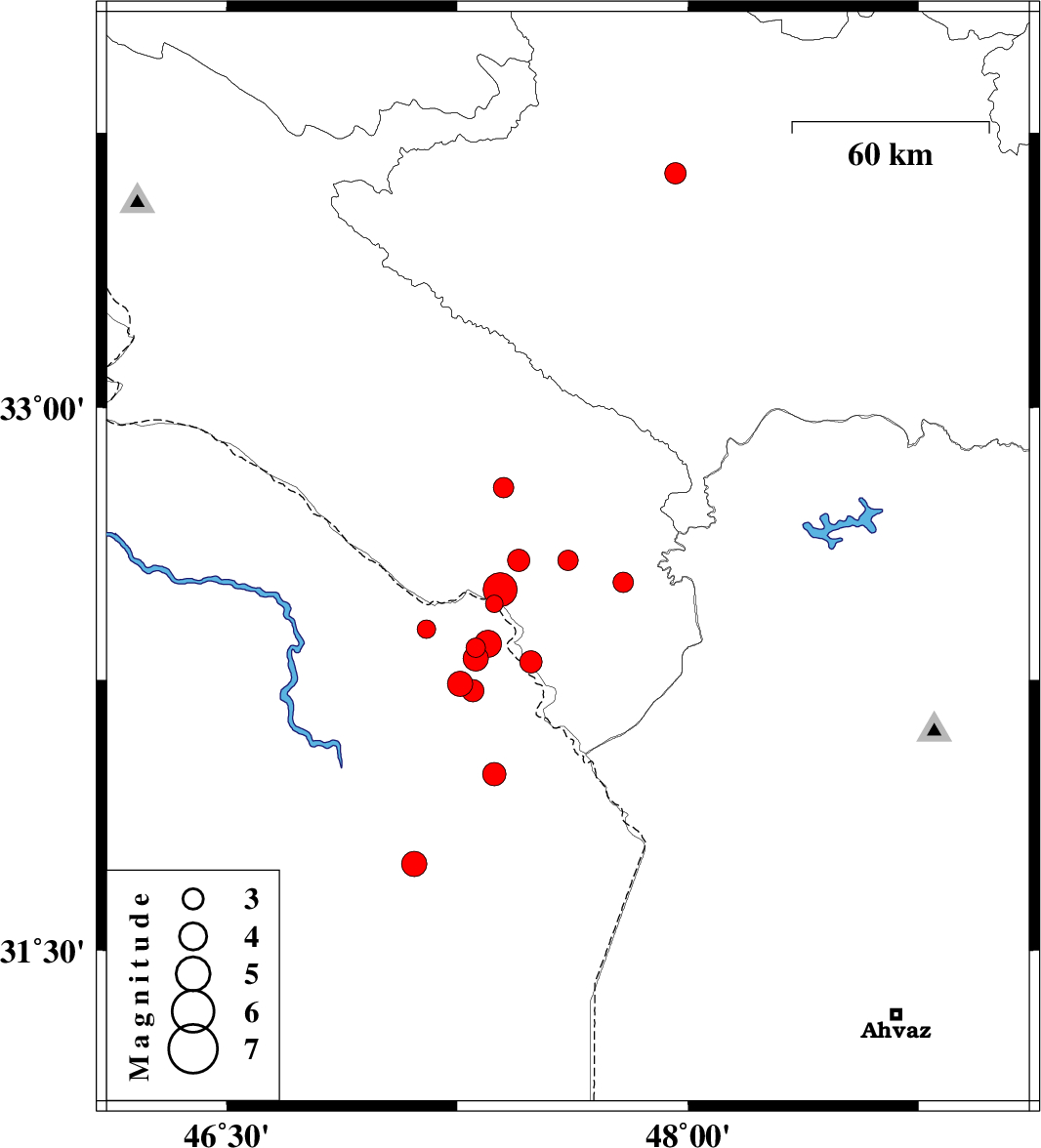 2008/09/02 22:32:17.7 03:02:17.7 31.9947.3736 ML:3.4 78 km South-East of Dehloran, Ilam Province