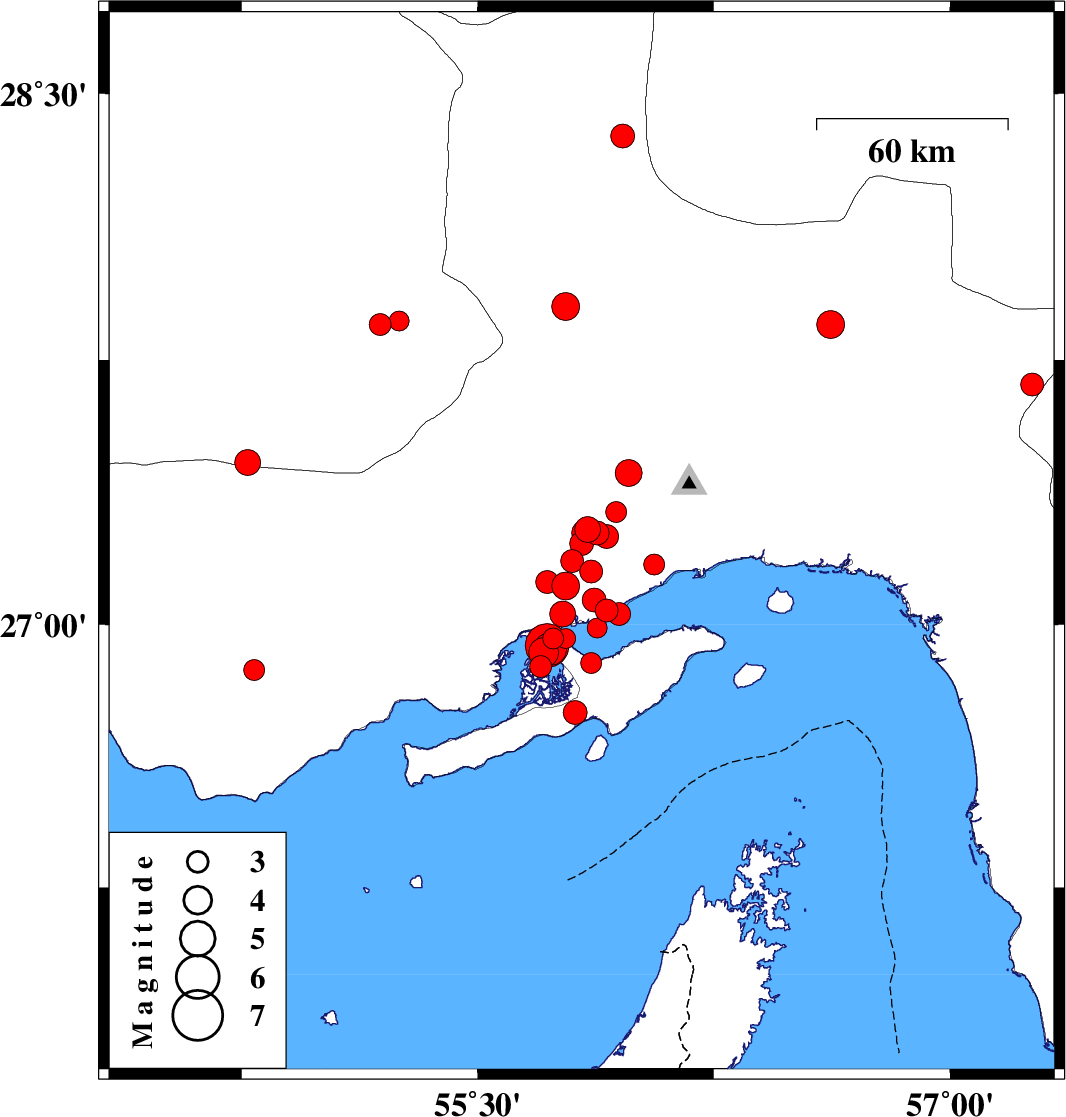 2008/09/10 12:00:21.1 16:30:21.1 27.0355.951 ML:3.3 Persian Gulf, 32 km West of Qeshm