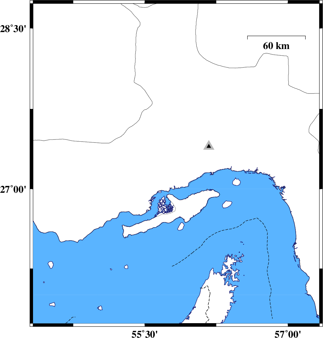 2008/09/10 15:57:57.6 20:27:57.6 26.7555.8110 ML:3.4 Persian Gulf, 50 km South-West of Qeshm