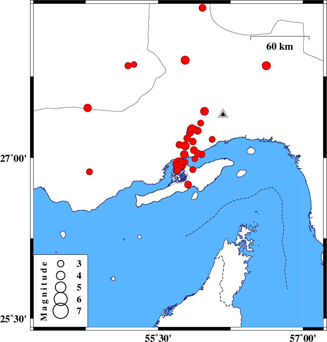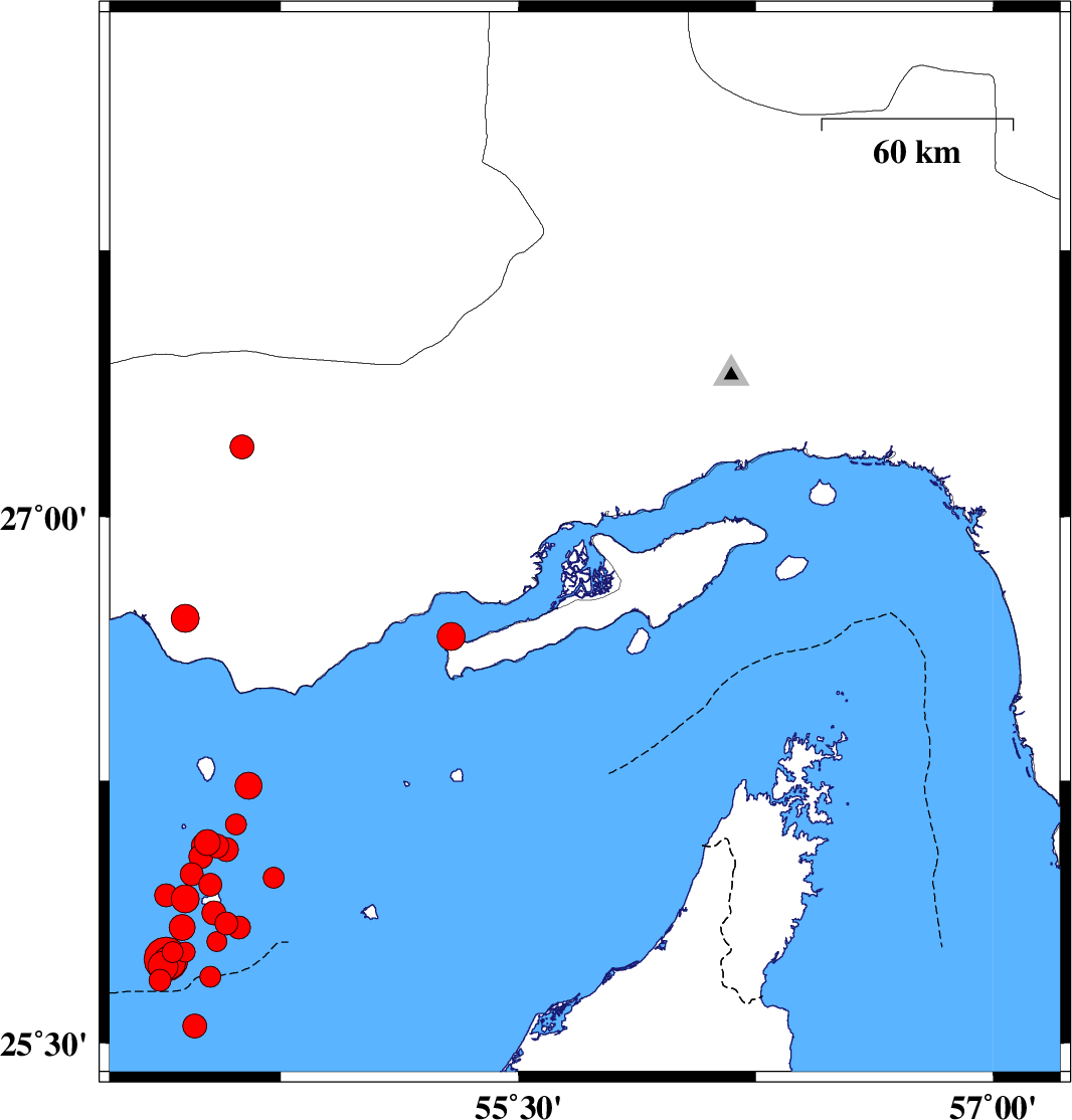 2008/09/10 12:00:21.1 16:30:21.1 27.0355.951 ML:3.3 Persian Gulf, 32 km West of Qeshm