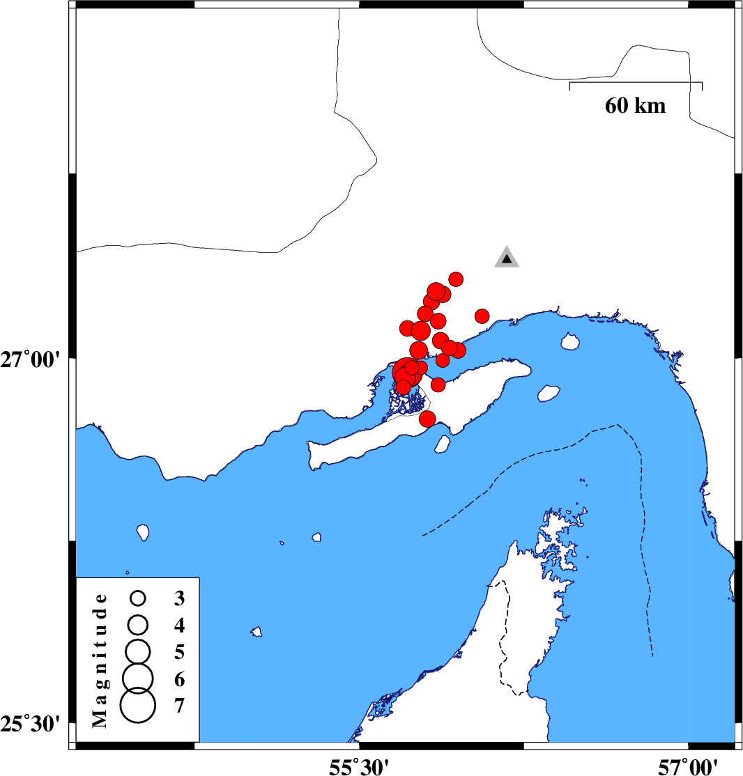 2008/09/10 12:00:21.1 16:30:21.1 27.0355.951 ML:3.3 Persian Gulf, 32 km West of Qeshm