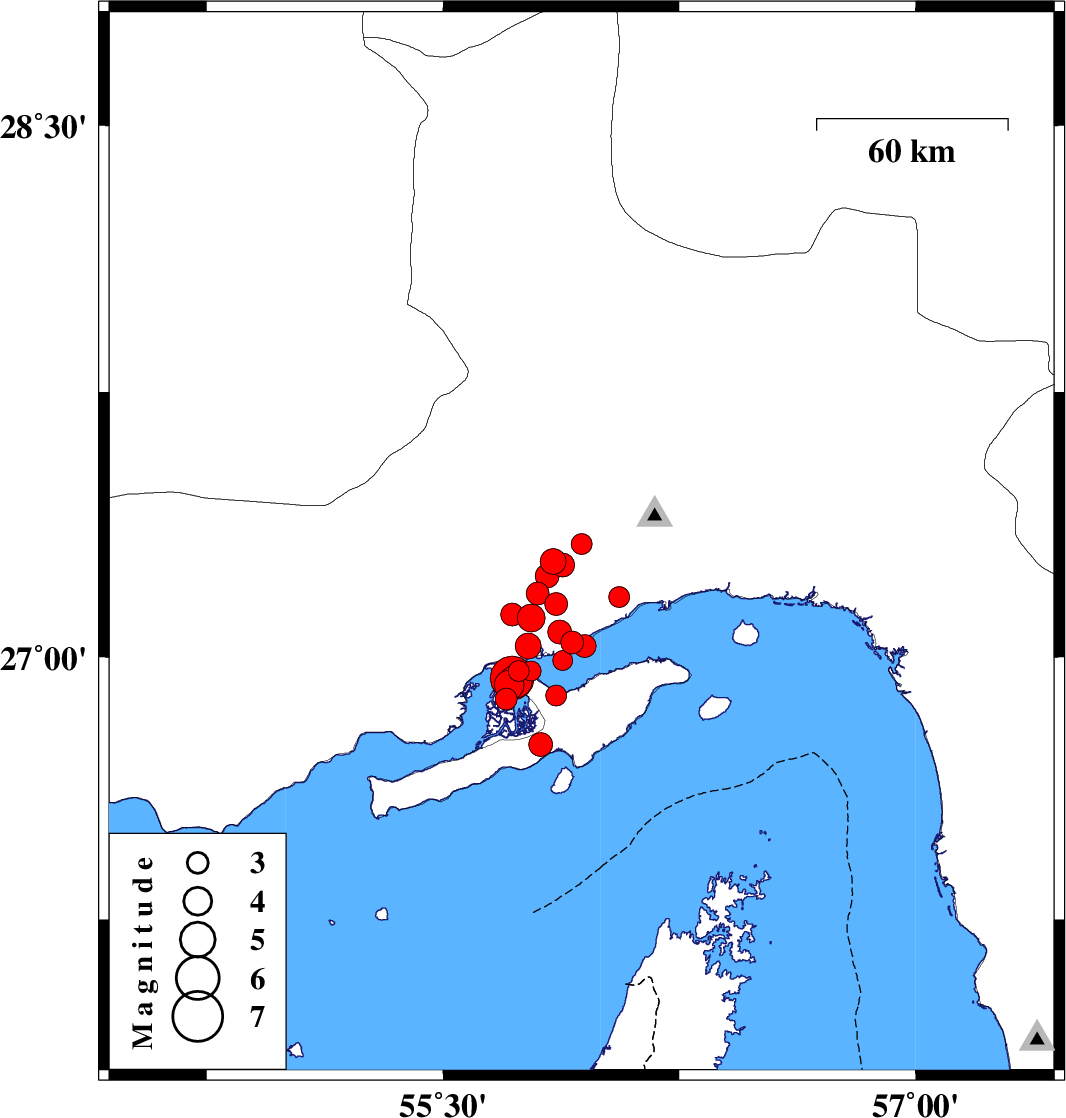 2008/09/10 12:00:21.1 16:30:21.1 27.0355.951 ML:3.3 Persian Gulf, 32 km West of Qeshm