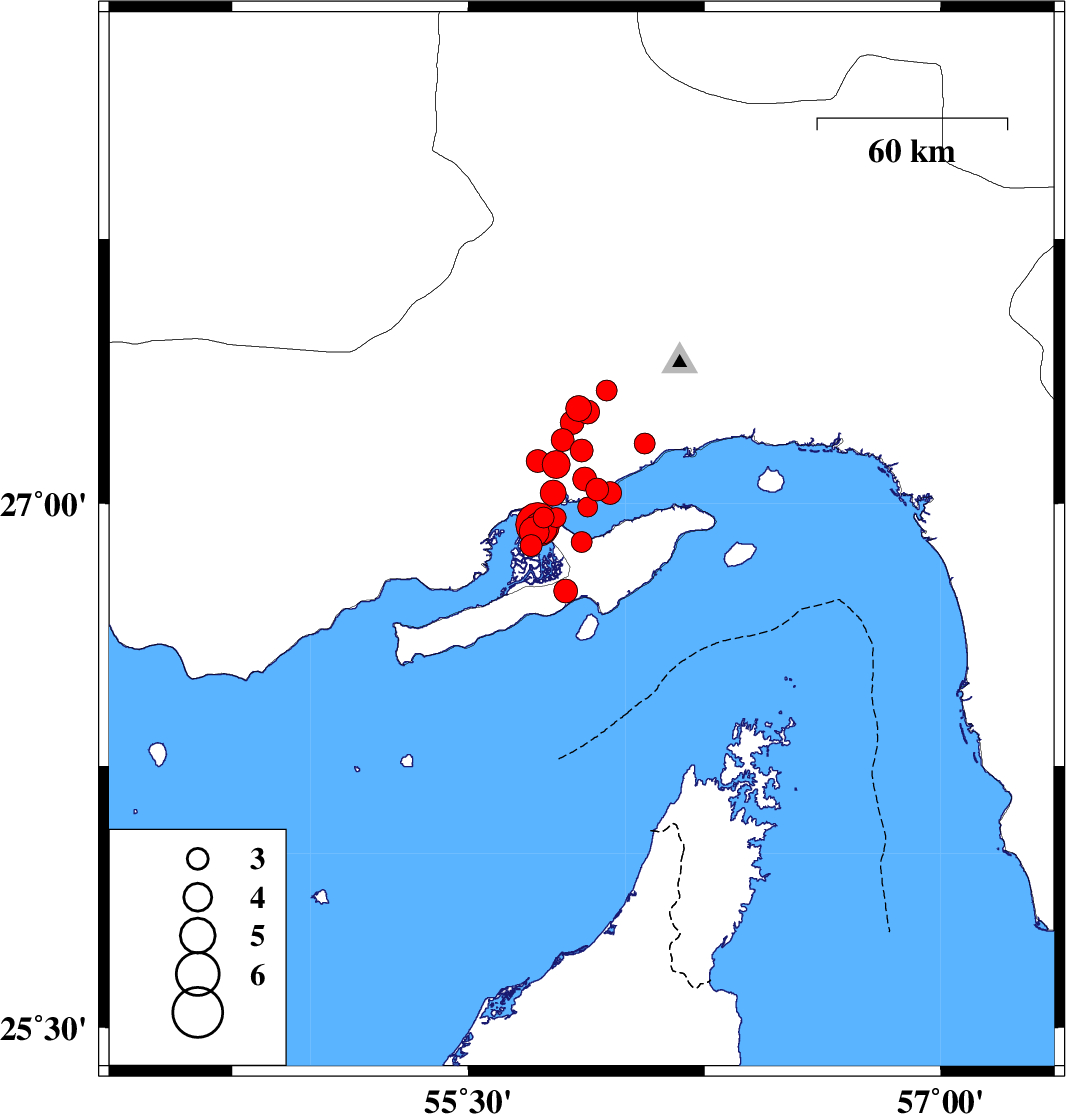 2008/09/10 12:00:21.1 16:30:21.1 27.0355.951 ML:3.3 Persian Gulf, 32 km West of Qeshm