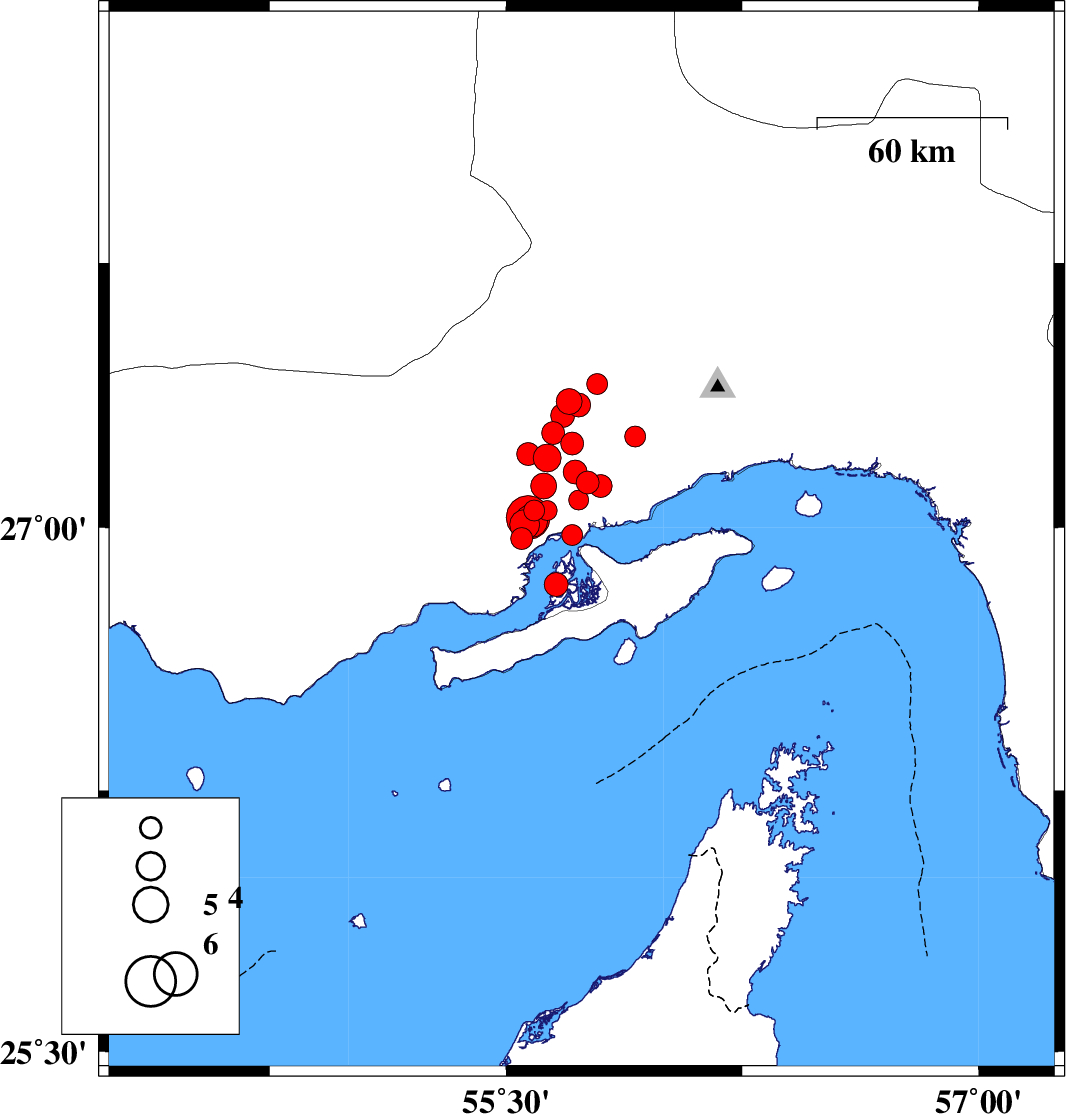 2008/09/10 12:00:21.1 16:30:21.1 27.0355.951 ML:3.3 Persian Gulf, 32 km West of Qeshm