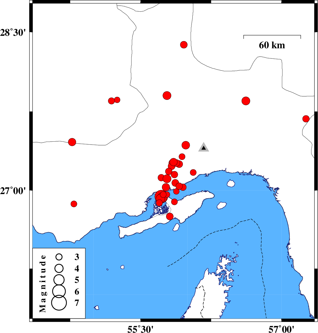 2008/09/10 13:10:10.1 17:40:10.1 27.1555.863 ML:3.3 42 km West of Bandar-e abbas, Hormozgan Province