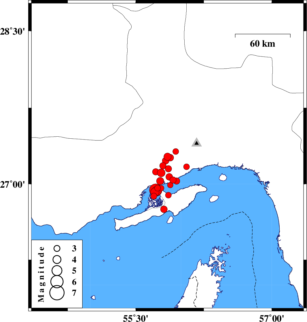 2008/09/10 12:00:21.1 16:30:21.1 27.0355.951 ML:3.3 Persian Gulf, 32 km West of Qeshm
