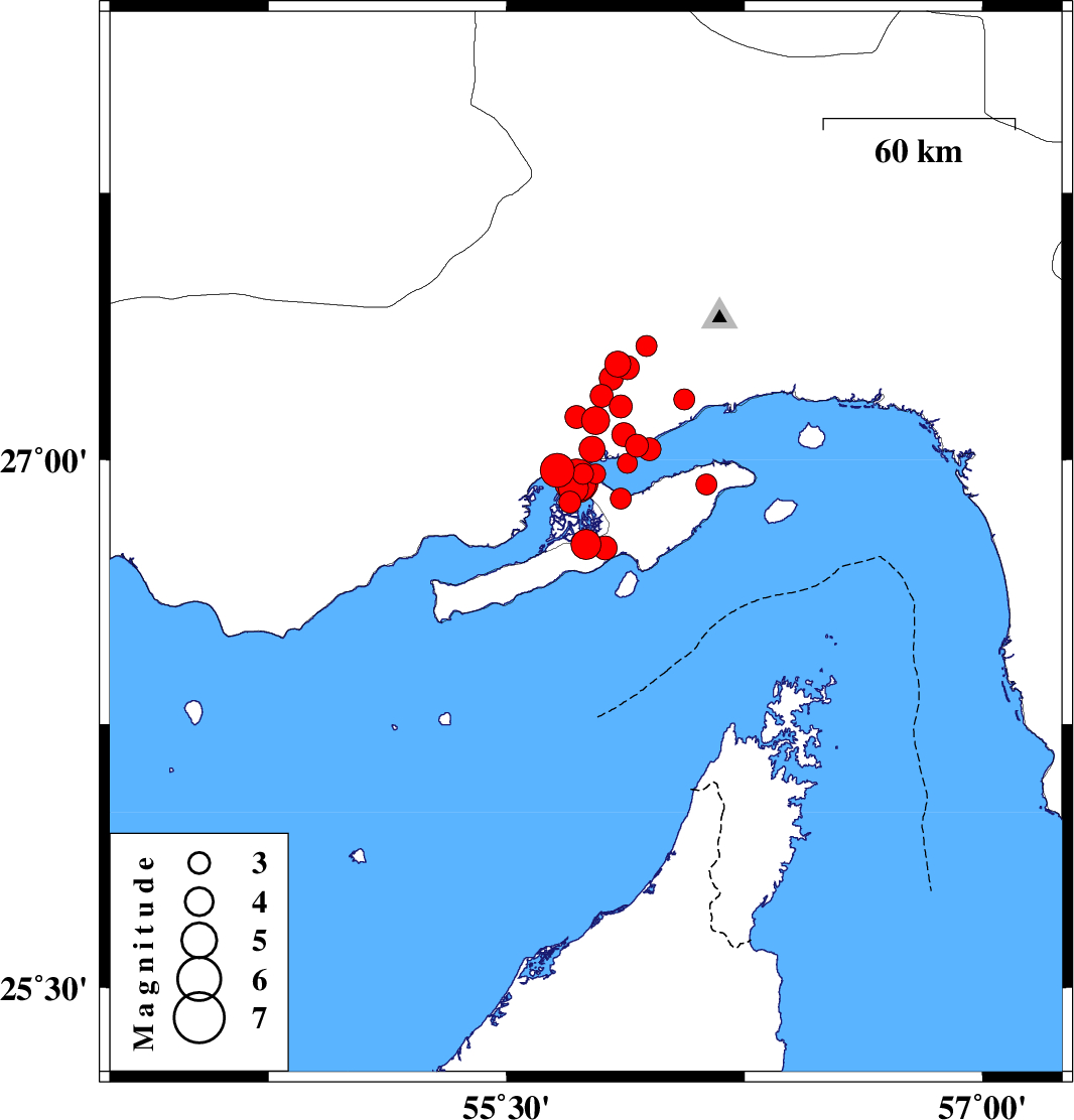 2008/09/10 12:00:21.1 16:30:21.1 27.0355.951 ML:3.3 Persian Gulf, 32 km West of Qeshm