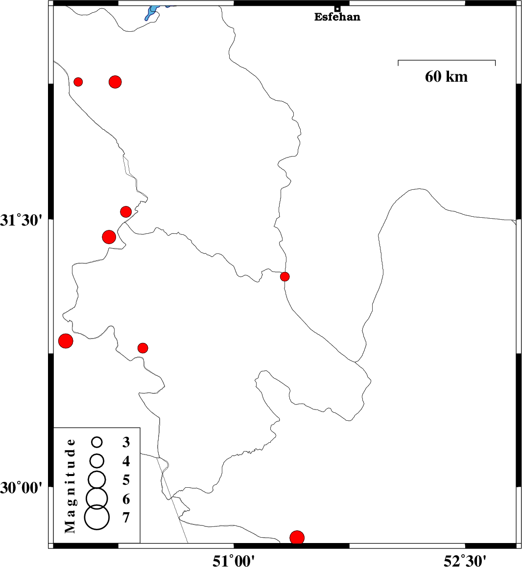 | 2008/08/16 | 02:03:14.5 | 06:33:14.5 | 32.26 | 50.23 | 15 | ML:3.7 | 25 km South-East of Chelgard, Chaharmahal Bakhtiari Province | ||
