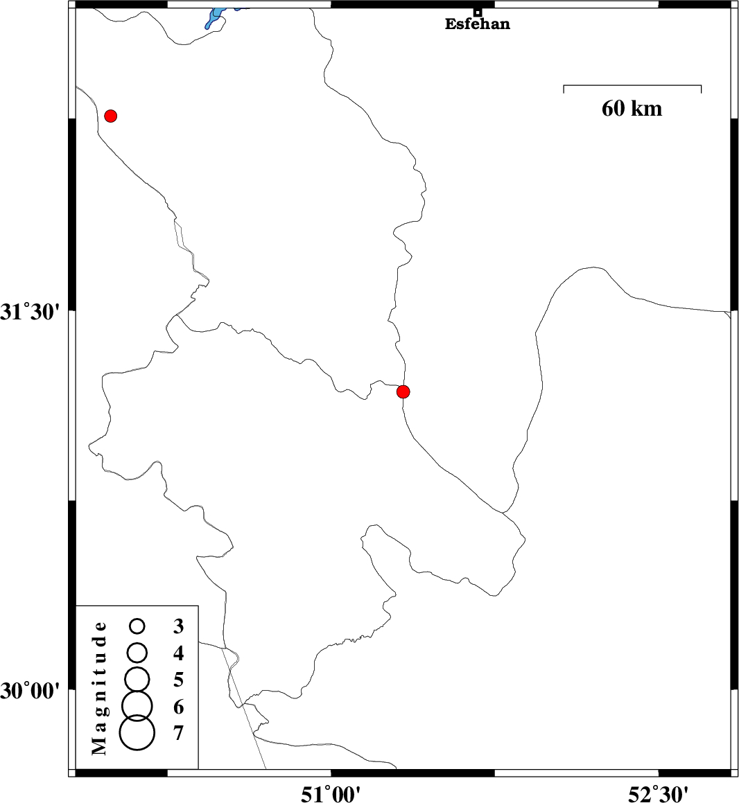| 2008/09/09 | 09:29:12.4 | 13:59:12.4 | 32.26 | 49.99 | 14 | ML:2.6 | 26 km South-West of Chelgard, Chaharmahal Bakhtiari Province |
