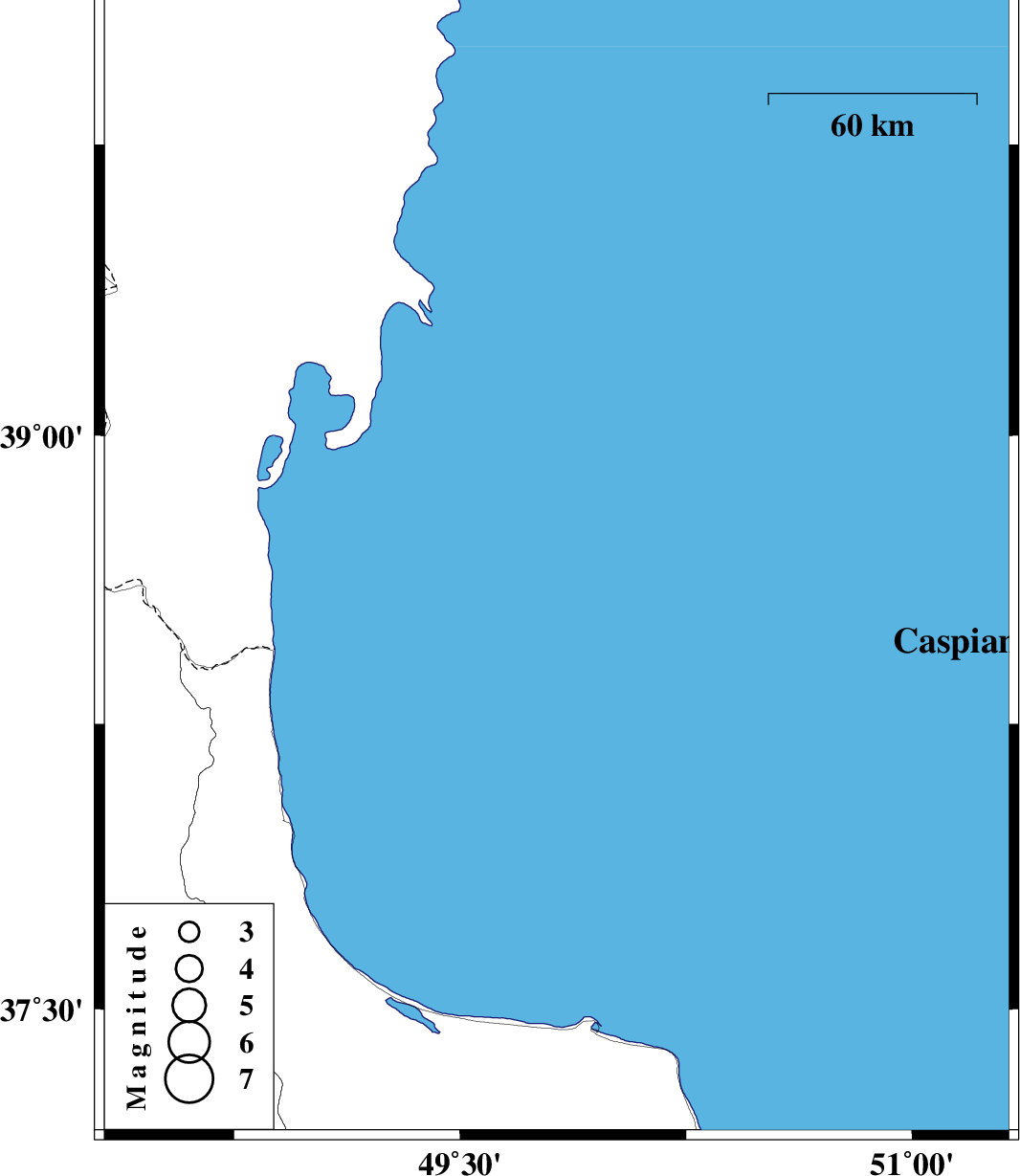 | 2008/09/14 | 23:32:34.3 | 04:02:34.3 | 38.68 | 49.82 | 14 | ML:3.7 | Caspian Sea, 88 km North-East of Astara |