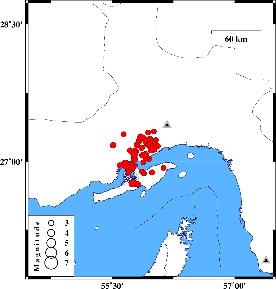 2008/09/10 12:00:21.1 16:30:21.1 27.0355.951 ML:3.3 Persian Gulf, 32 km West of Qeshm